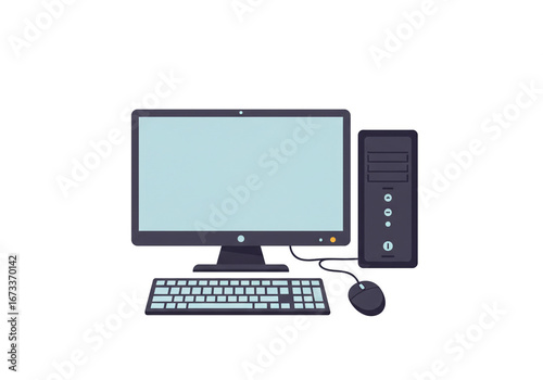 computer, desktop, monitor, screen, keyboard, mouse, technology, workstation, digital, office, work, business, cyberspace, online, communication, design, modern, graphic, datum, information, device, tech, display, contraption, computing, connect, creative, illustration, isolated, white, background, professional, minimalist, clean, simple, workspace, productivity