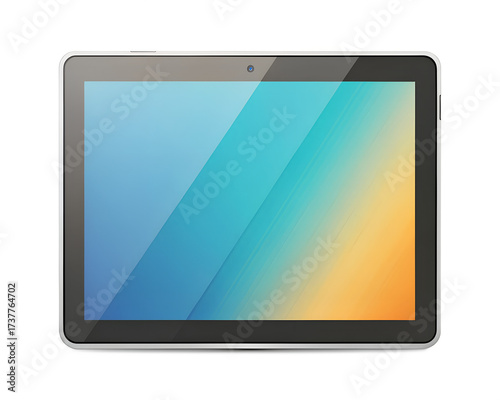 Modern digital tablet computer with a colorful abstract screen display isolated on transparent background