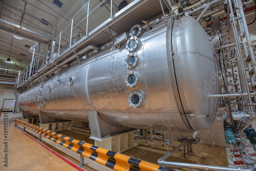 Modern drink cellar with horizontal stainless steel tanks