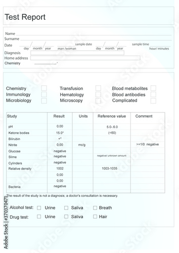 Modern drug test form with results. Illustration