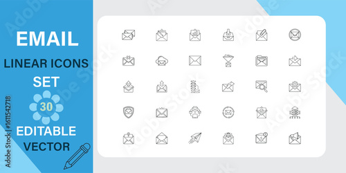 electronic mail, icon, linear, set, vector, communication, digital, business, web, app, design, graphic, symbol, illustration, collection, outline, iconography, messaging, contact, mail, envelope, send, receive, draft, inbox, spam, attachment, notification, template, editable, icon, signs, flat