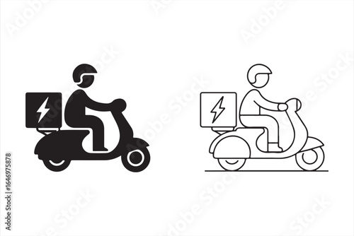 delivery, scooter, electric, courier, shipping, parcel, rider, transport, motorcycle, bike, express, service, package, logistic, fast, vehicle, icon, vector, symbol, ride, order, distribution, good, supply, motorbike, moped, transportation, send, black, white, outline, solid, speed, moving, rush, deliver, client, mobility, urban, cycle, driver, e-business, shop