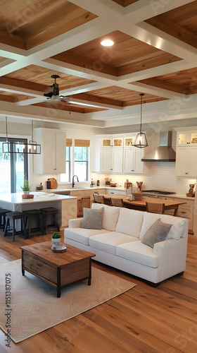 Modern Farmhouse Kitchen Living Room Interior Design.