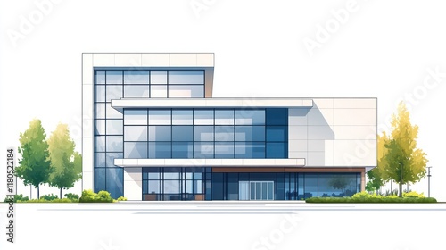 building, architecture, office, modern, glasses, concrete, design, structure, facades, contemporary, commercial, real estate, property, urban, city, skyscraper, business, corporate, exterior, window, wall, piazza, landscaping, tree, plant, entrance, lobby, sunlight, shadow, white, grey, blue, illustration, rendering, drawing, model, project, development, construction, estate, view, scene, image, photo, picture, artwork, graphic