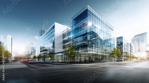 building, glasses, office, modern, city, architecture, street, urban, sunlight, tree, business, exterior, downtown, commercial, skyscraper, road, transportation, city landscape, corporate, contemporary, facades, window, daytime, infrastructure