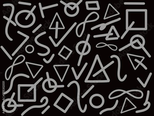 doodle, grey, style, illustration, square, line, circle, curve, pattern, modern, hand-drawn, art, children, shape, abstract, background, design, vector, graphic, fun, party, collection, isolated, random, wallpaper, decoration, fabric, hand, symbol, textile, texture, geometric, minimal, simple, colours, primary, artistic, drawing, childish, scribble, set, concept, creative, cute, minimalist, seamless pattern, simplicity, signs, stripes