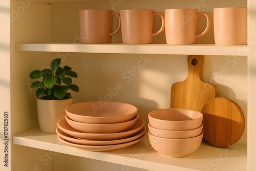 Modern Home Decor Ideas: Pink Pottery and Ceramic Dinnerware with Kitchenware for a Minimalist Table Setting