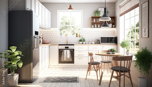 Modern home kitchen interior design, architecture design, Generative AI concept