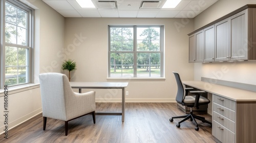 home office, office, interior, modern, desk, chair, ergonomic, window, natural light, view, tree, nature, cabinet, furniture, design, architecture, indoor, workspace, window, organisation, serene, networking, efficiency, collaboration, planning, vision, hardwood, flooring, illumination, management, strategy, layout, atmosphere, comfortable, contemporary, creativity, aesthetic, professional, tool, calming, productivity, ambience, meeting, minimalism, business, light, technology