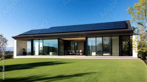 Modern home with solar panels and minimalistic design