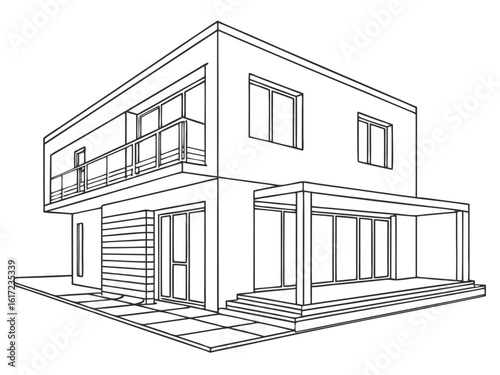 Modern House Architecture – 3D Wireframe and Structural Visualization vector template