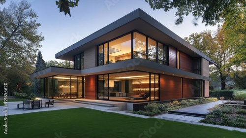 house, home, modern, architecture, exterior, design, luxury, building, residence, property, real estate, contemporary, window, facades, lawn, garden, landscaping, green, grass, tree, sky, cloud, evening, twilight, dusk, residential, suburban, neighbourhood, living, lifestyle, homeownership, stylish, roomy, elegant, new, construction, investment, mortgage, family, dwelling, outdoors, front yard, window, door, pathway, concrete
