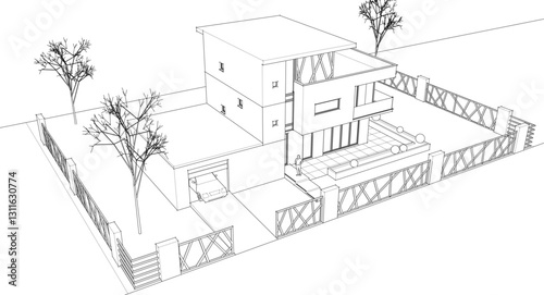 modern house sketch 3d illustration