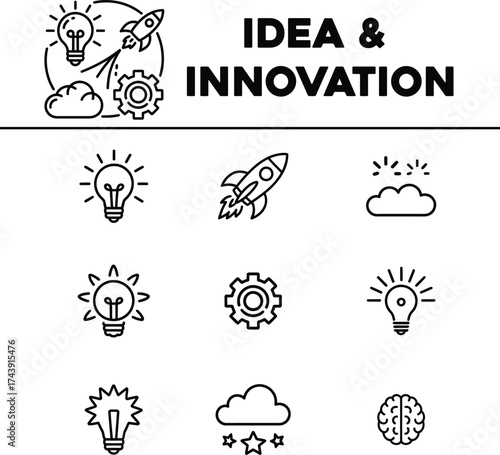 idea, innovation, icon, set, vector, graphic, design, concept, creativity, solution, strategy, brainstorming, inspiration, development, progress, growth, technology, business, communication, planning, thinking, cognition, learning, discovery, startup, project, management, digital, art, icon