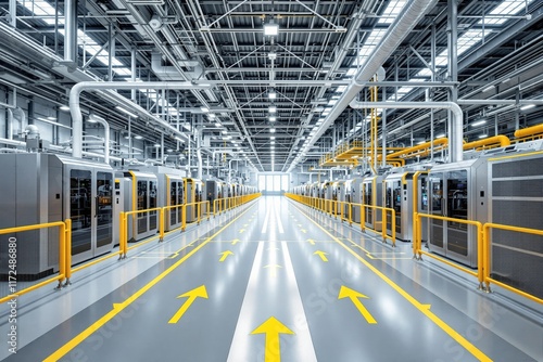 factory, industrial, automation, modern, machinery, manufacturing, technology, production, innovation, engineering, equipment, pipe, metallic, yellow, safety, interior, workspace, operation, clean, bright, futuristic, development, system, robotic, assembly, line, advanced, processing, infrastructure, mechanical, workplace, facility, efficient, precision, plant, contemporary, tech, management, stuff, effect, security, inside, new, shining, ai, generative, illustration