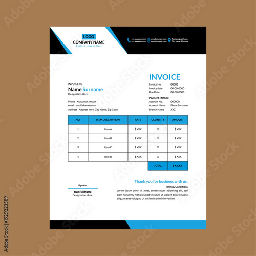 Modern Invoice Layout. Trendy Template Display for Promotion.