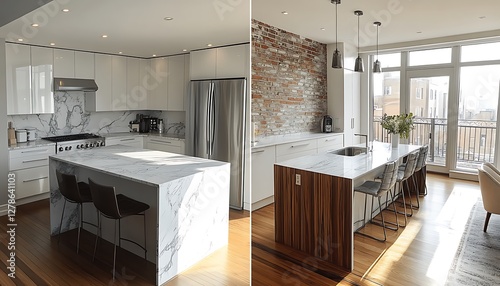 kitchen, modern, design, city, view, apartment, home, interior, kitchen, contemporary, remodel, renovation, luxury, house, real, estate, property, architecture, style, bright, space, room, cooking, dining, lifestyle, elegant, clean, minimalist, chic, white, wood, marble, counter, island, furniture, decor, light, window, urban