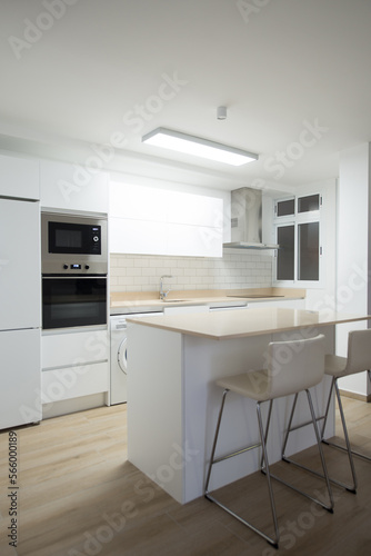 apartment, appliance, architecture, contemporary, counter, decor, design, domestic, floor, furniture, home, house, interior, kitchen, luxury, modern, nobody, oven, room, sink, table, wall, white, window, wood