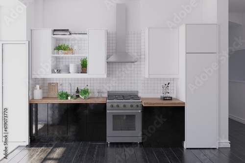 furniture, room, interior, home, modern, design, decoration, architecture, apartment, contemporary, floor, light, white, nobody, wall, indoor, kitchen, decor, house, style, table, living, luxury, three-dimensional, empty, space, chair, comfortable, rendering, window, lifestyle, three-dimensional, counter, desk, dining, inside, lamp, parquet, render, appliance, illustration, new, bright, clean, flat, top, black