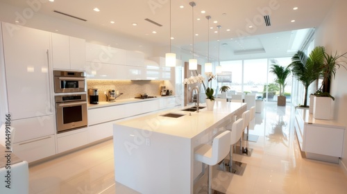 kitchen, modern, interior, design, white, appliance, countertop, cabinet, island, chair, stainless, steel, floor, lighting, ceiling, room, decor, furniture, home, style, contemporary, minimalist, luxury, open, space, bright, clean, airy, elegant, sophisticated, functional, comfortable, sleek, geometric, line, simple, stylish, house, living, kitchenette, dining