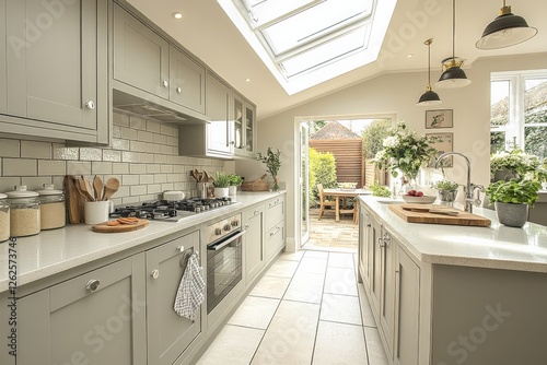 kitchen, interior design, modern, natural light, skylight, herb, utensil, home, cooking, decor, contemporary, plant, serene, furniture, appliance, warm tones, stylish, inviting, minimalistic, organisation, countertop, home improvement, functionality, layout, open space, aesthetic, window, design, renovation, brightness, wood, texture, greenery, space, comfort, atmosphere, relaxation, creativity