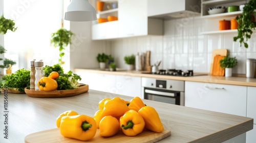 kitchen, interior, modern, white, cabinet, yellow, pepper, natural, lifestyle, vibrant, green, decor, element, design, home, cooking, fresh, vegetable, elegance, style, cosy, appliance, contemporary, functionality, aesthetic, arrangement, space, culinary, bright, harmony, colours, atmosphere, inviting, food, healthy, ambience, layout, palmy, organic, cheerful, simplicity, accessory, living, artistic, decorating, comfort, beauty