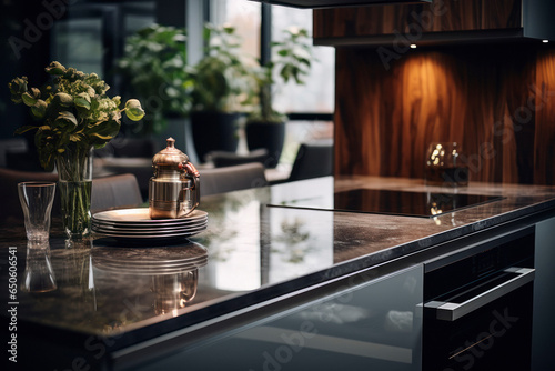 kitchen, apartment, home, interior, domestic, appliance, light, design, luxury, drawer, cabinet, showcase, showroom, surround, empty, door, culinary, homemade, temperature, kitchen utensile, prepare, residential, floor, room, furniture, equipment, contemporary, counter, flat, family, comfort, dining table, wealth, table, tulip, bright, curtain, carpet, natural, nobody, vintage, decor, decoration, ai, generated, artificial intelligence