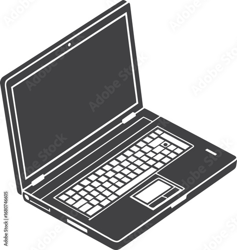 laptop, computer, notebook, technology, device, electronic, portable, open, screen, keyboard, touchpad, digital, work, office, business, communication, cyberspace, web, online, information, datum, connection, modern, sleek, vector, illustration, graphic, icon, isolated, white background
