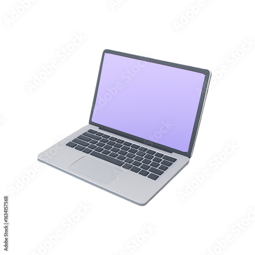 Modern laptop computer with purple screen isolated on transparent background