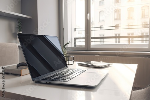 Modern laptop in room on table. Generative AI