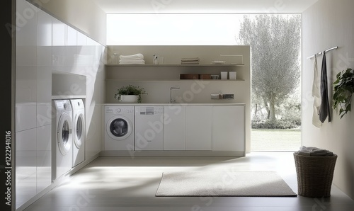 modern, laundry, room, white, appliance, storage, shelf, basket, clean, domestic, washing, machine, home, interior, design, washer, hygiene, routine, house, nobody, bathroom, household, housework, towel, equipment, appliance, housekeeping, care