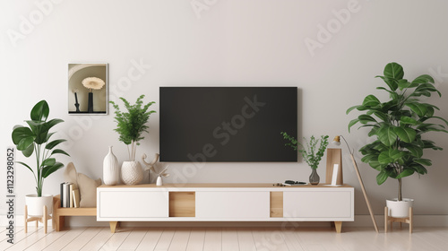 Modern Living Room Interior TV Stand Plants Minimalist Decor
