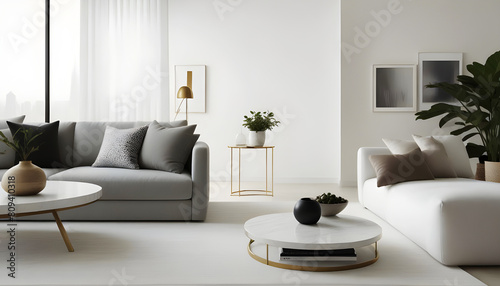 modern living room minimalist design and luxury furniture and decor. Generative AI
