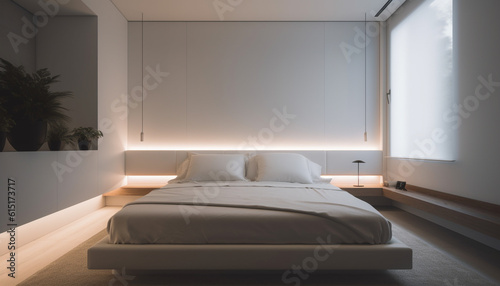 Modern luxury bedroom with comfortable double bed and elegant decor generated by AI