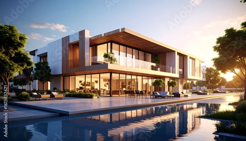 house, modern, luxury, home, pool, sunset, architecture, design, villa, contemporary, elegant, roomy, waterfront, landscape, estate, residential, property, real, building, exterior, style
