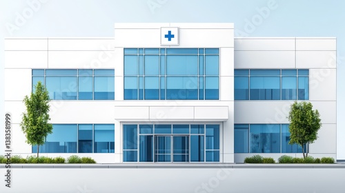 clinic, medicals, health care, hospital, building, modern, exterior, day, sunny, tree, health, doctor, medicine, wellness, treatment, patient, care, facility, architecture, design, structure, office, window, entrance, door, facades, commercial, property, real estate, business, urban, landscape, sky, clean, bright, professional, corporate, image, photo, stock, photo