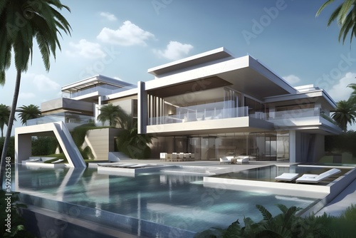 modern mega mansion. generative AI illustration.