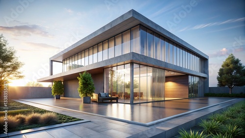 Modern Minimalist Architecture Mockup: Clean Lines & Geometric Design - 3D Rendering