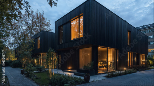 Modern minimalist black townhouses in Oslo showcasing luxury condo living