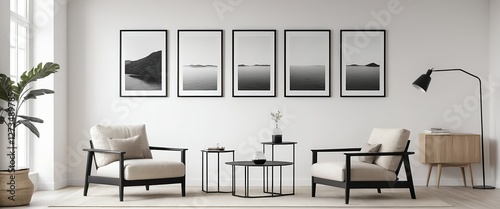 Modern Minimalist Living Room Interior with Black and White Artwork