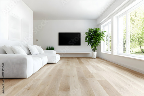 modern, minimalist, living, room, white, sofa, couch, window, wood, floor, interior, design, decor, furniture, television, plant, home, apartment, house, contemporary, bright, clean, simple, neutral, light, roomy, natural, living room, home, style, cosy, elegant, space, luxurious, comfortable, architecture