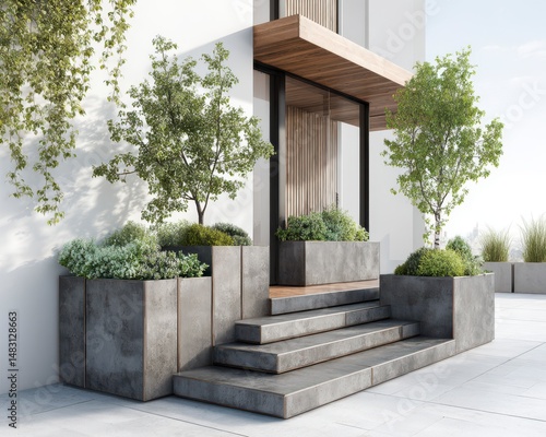 Modern Minimalist Steps with Sleek Planters and Greenery Accents