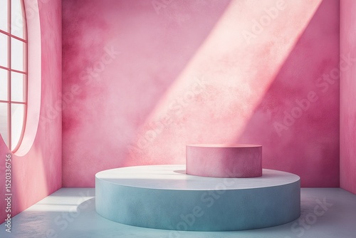 pink, blue, interior, design, modern, minimalist, studio, background, dais, lighting, artistic, creative, abstract, room, space, empty, texture, shadow, sunlight, pastel, surface, display, platform, stage, minimalism, elegant, contemporary, furniture, natural light, warm tones, stylish, inspirational, vibrant, exhibition