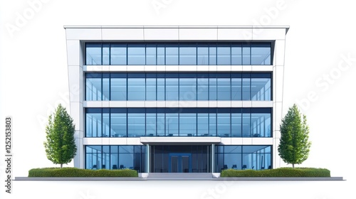 Modern office building facade, isolated on white, for business and architecture