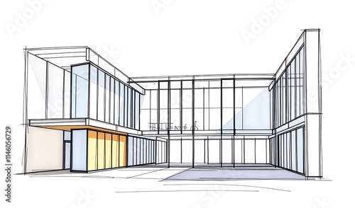 Modern Office Building Sketch: Clean Architectural Illustration. AI Generated
