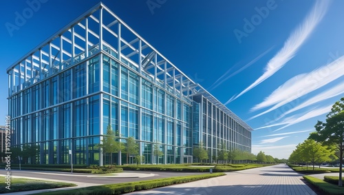 glass building, city architecture, urban, blue skies, building, skyscraper, architecture, office, business, blue, skyline, high, construction