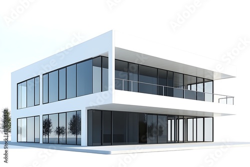 Modern Office Building with Expansive Glass Facades and Sleek Architectural Design