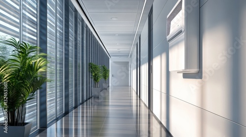 modern, office, corridor, air conditioning, workplace, corporate, business, interior, contemporary, hallway, technology, efficiency, professional, light, bright, clean, design, architecture, illumination, atrium, glasses, window, sunny, modernity, comfort, ceiling, floor, tile, arrow, movement, perspective, futuristic, concept, urban, sleek, transparent, furniture, seating, greenery, modernism, connectivity, industry, workspace, neat, organised, elegant, roomy, paneling