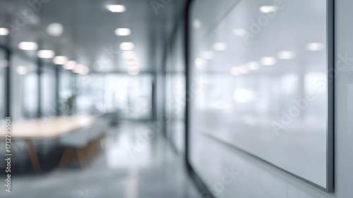 Modern Office Interior: Blank Whiteboard in Blurred Background Minimalist Design.