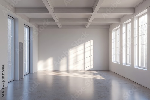 Modern office interior with blank wall for mockup display. AI generated illustration.